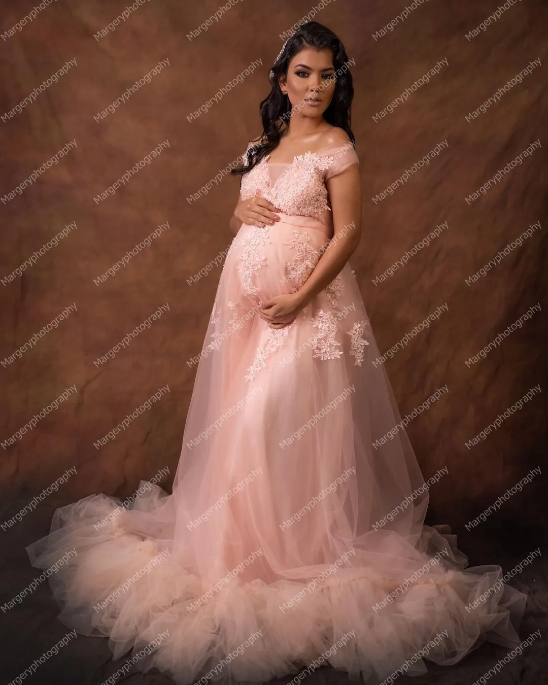 Пышное розовое Тюлевое платье для беременных женщин, длинные халаты...