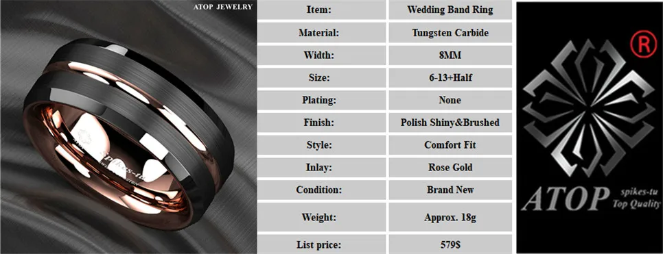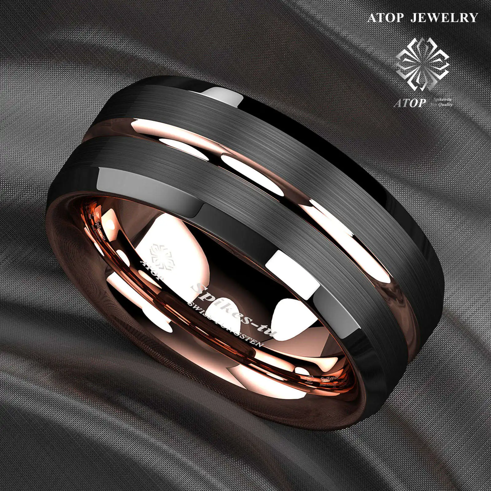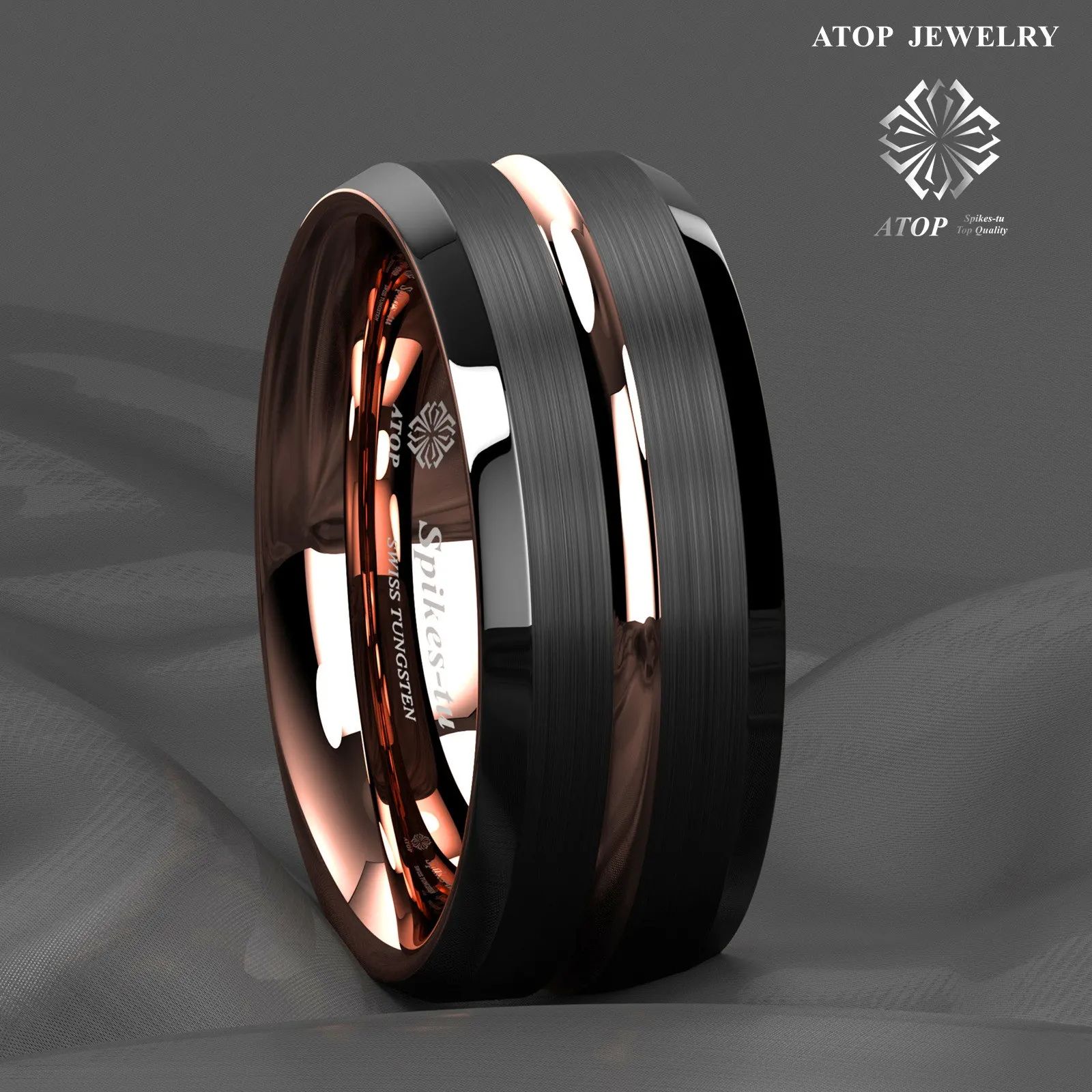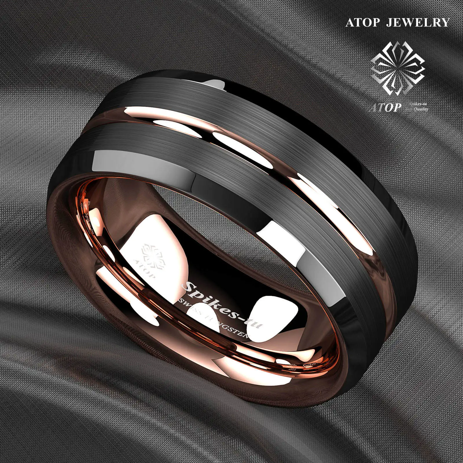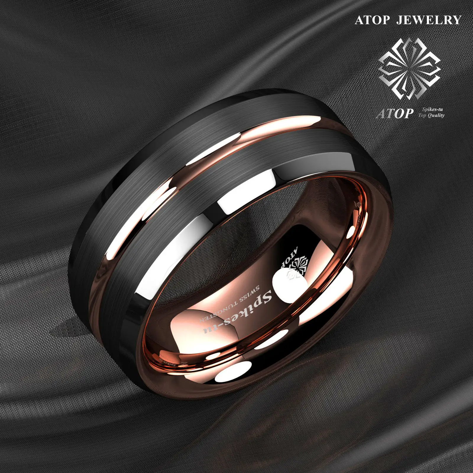 Кольцо из карбида вольфрама с матовым покрытием под розовое золото, 8 мм