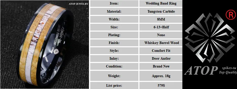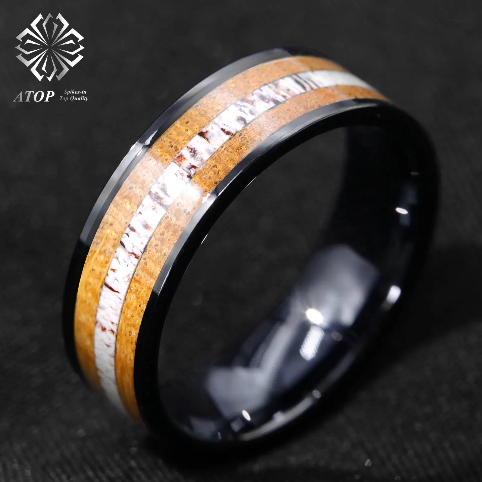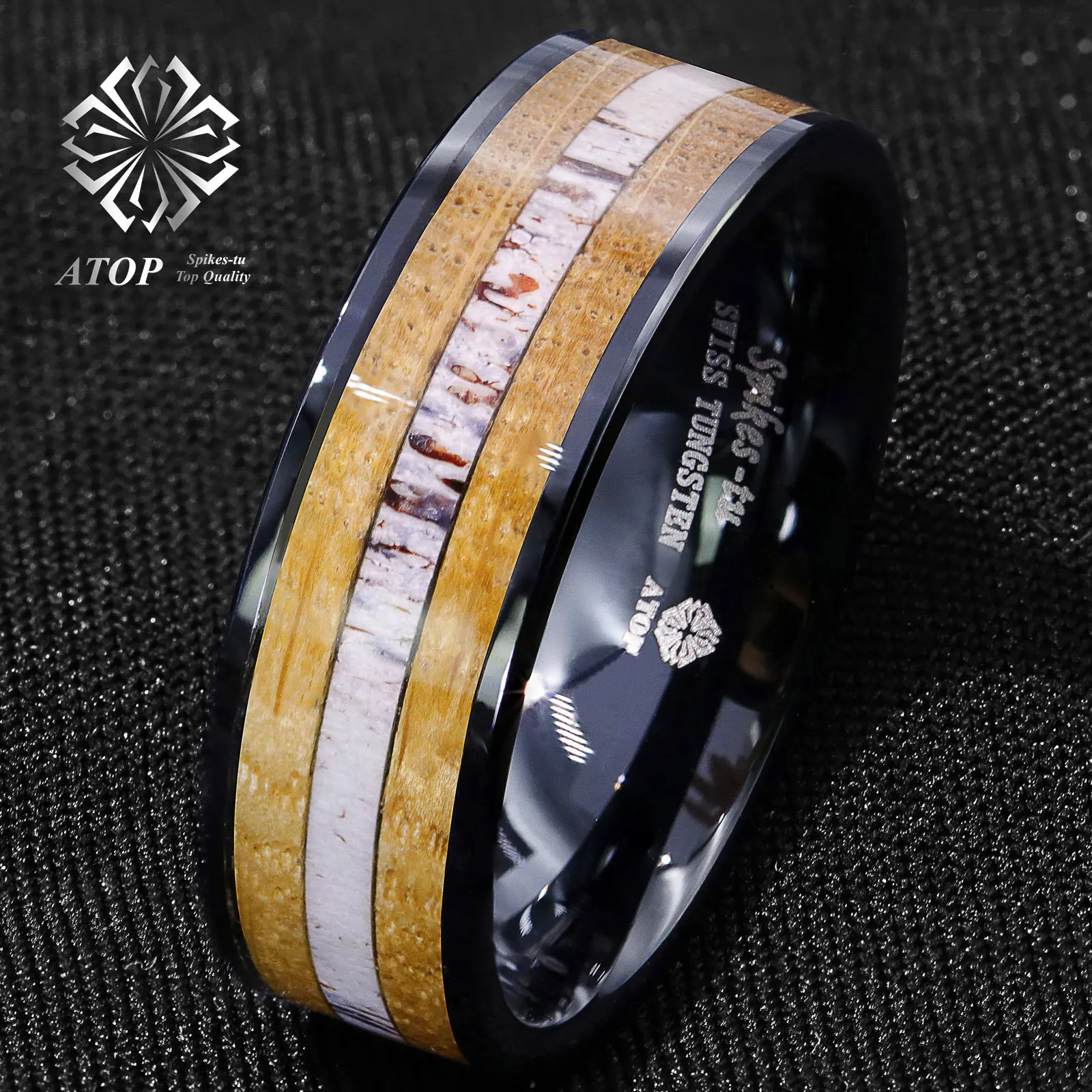 Вольфрамовое кольцо 8 мм, обручальное кольцо, олень, рог и виски, деревянная бочка, ювелирные изделия