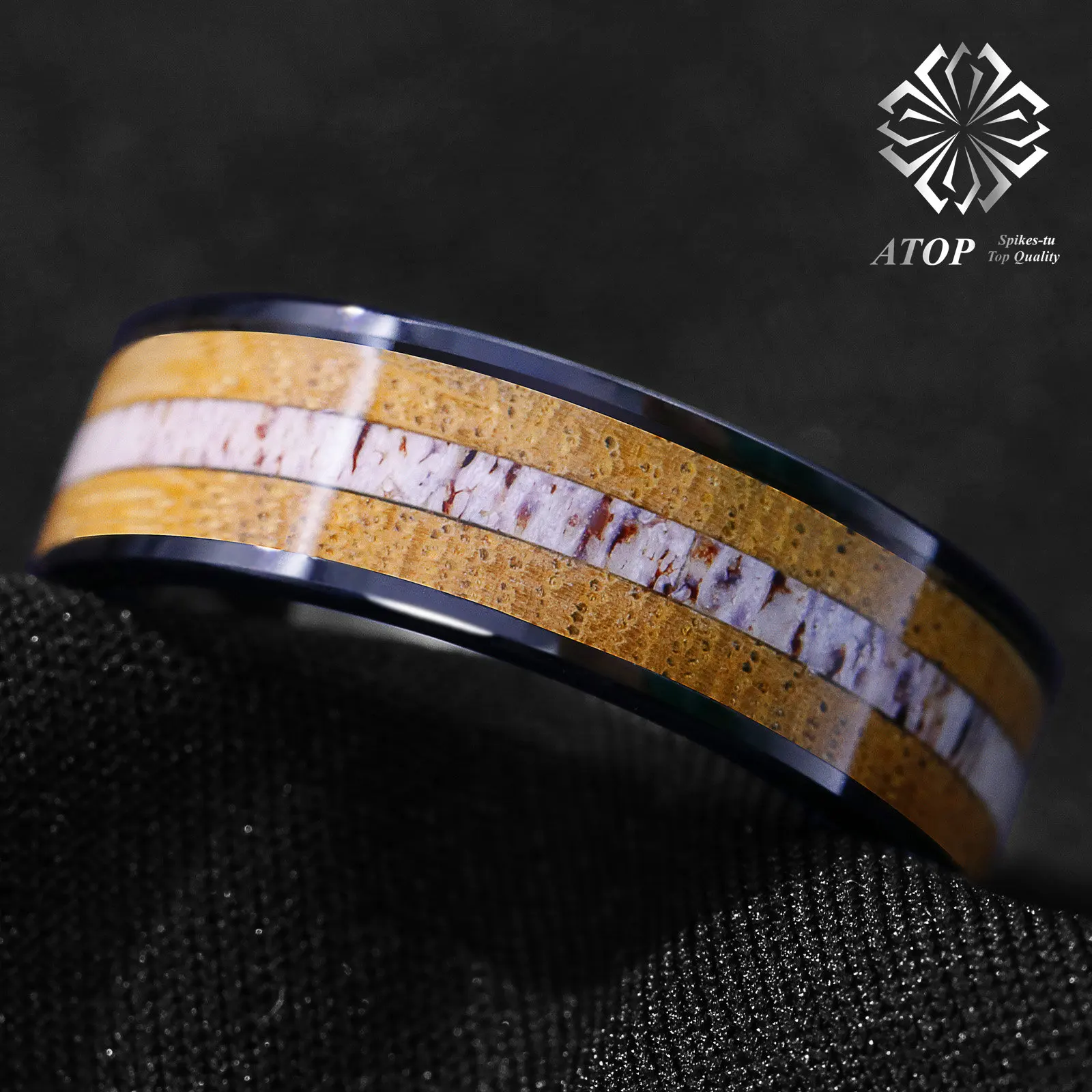 Кольцо из карбида вольфрама, черное, 8 мм, оленьи рога и инкрустаци...