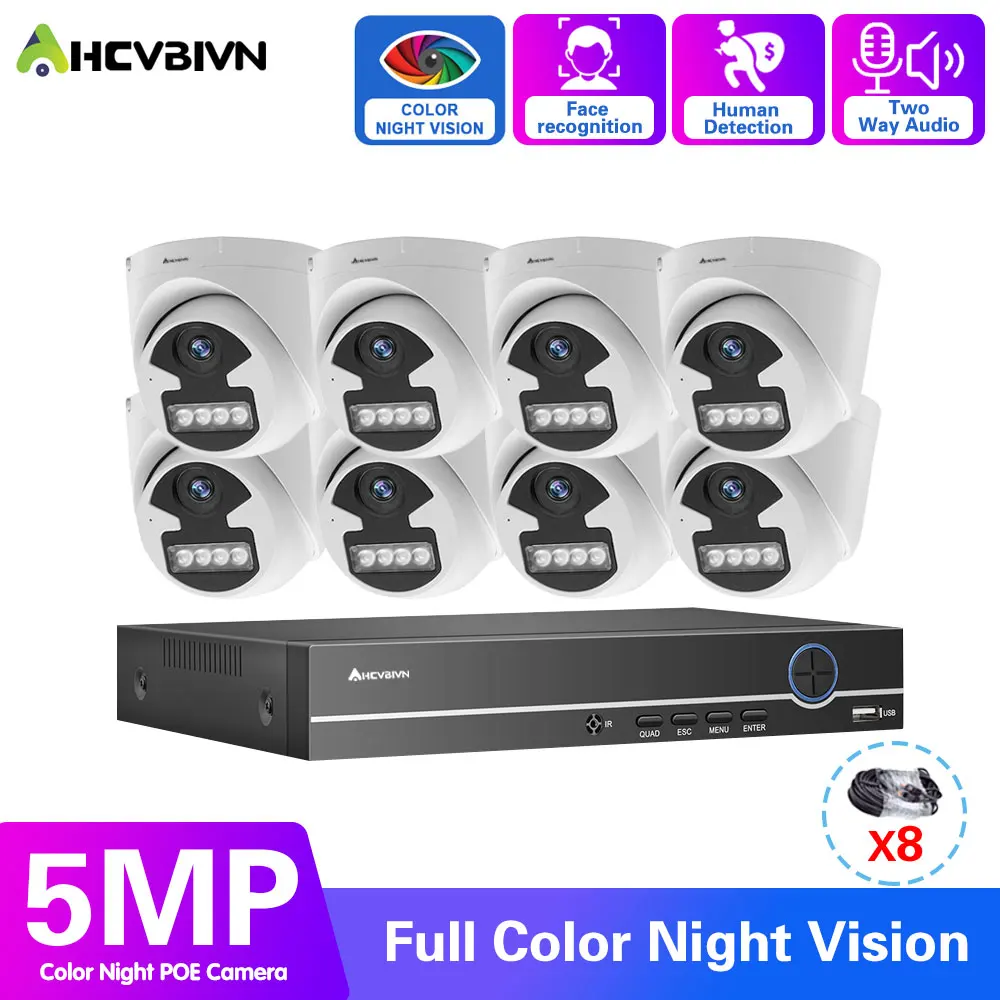8ch NVR POE видеокамера камера видеонаблюдения системы безопасности камера система для дома 5MP H.265 HD Цвет ночного видения купольная POE IP Камера Наборы