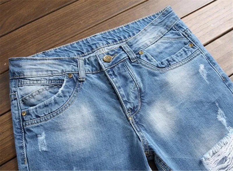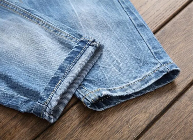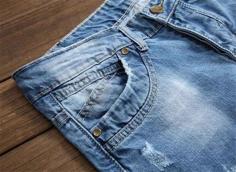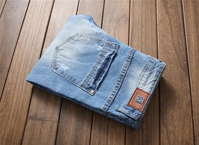 Джинсы мужские повседневные однотонные, узкие брюки-карандаш полной длины, модные джинсы из денима размера плюс, рваные брюки синего цвета