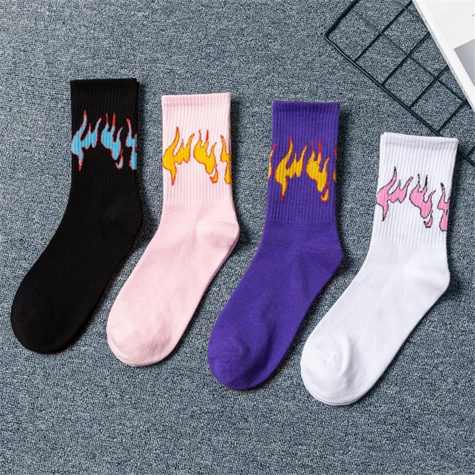 Новые модные мужские носки в стиле хип-хоп Цвет огне нескользящих носочков, красные, Пламенные со стразами вспыш и чудо-Мощность фонарь Горячая тепло Уличная Скейтборд хлопковые носки