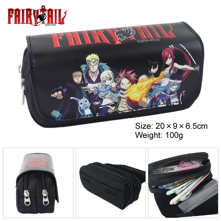 Чехол для карандашей из ткани Оксфорд, двухслойный чехол большой вместимости с рисунком сказочного аниме хвоста, школьный офисный пенал