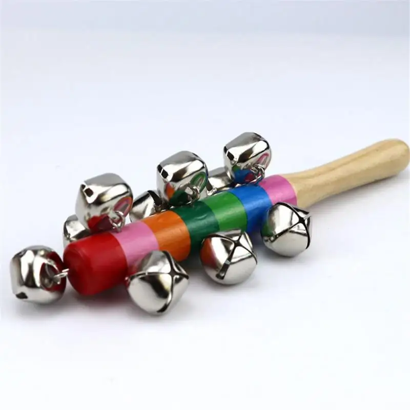 Детские радужные деревянные погремушки, ручной Колокольчик, шейкер ...