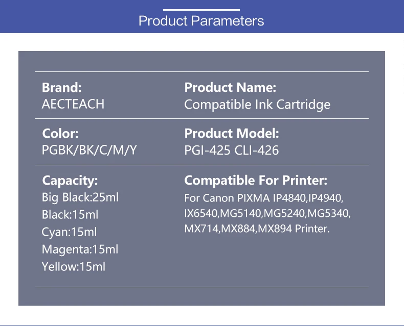 Aecteach новый для Canon PGI425 PGI-425 CLI-426 совместимый чернильный картридж для принтера Canon принтерам PIXMA IP4840 IP4940 IX6540 MG5140 5240 5340