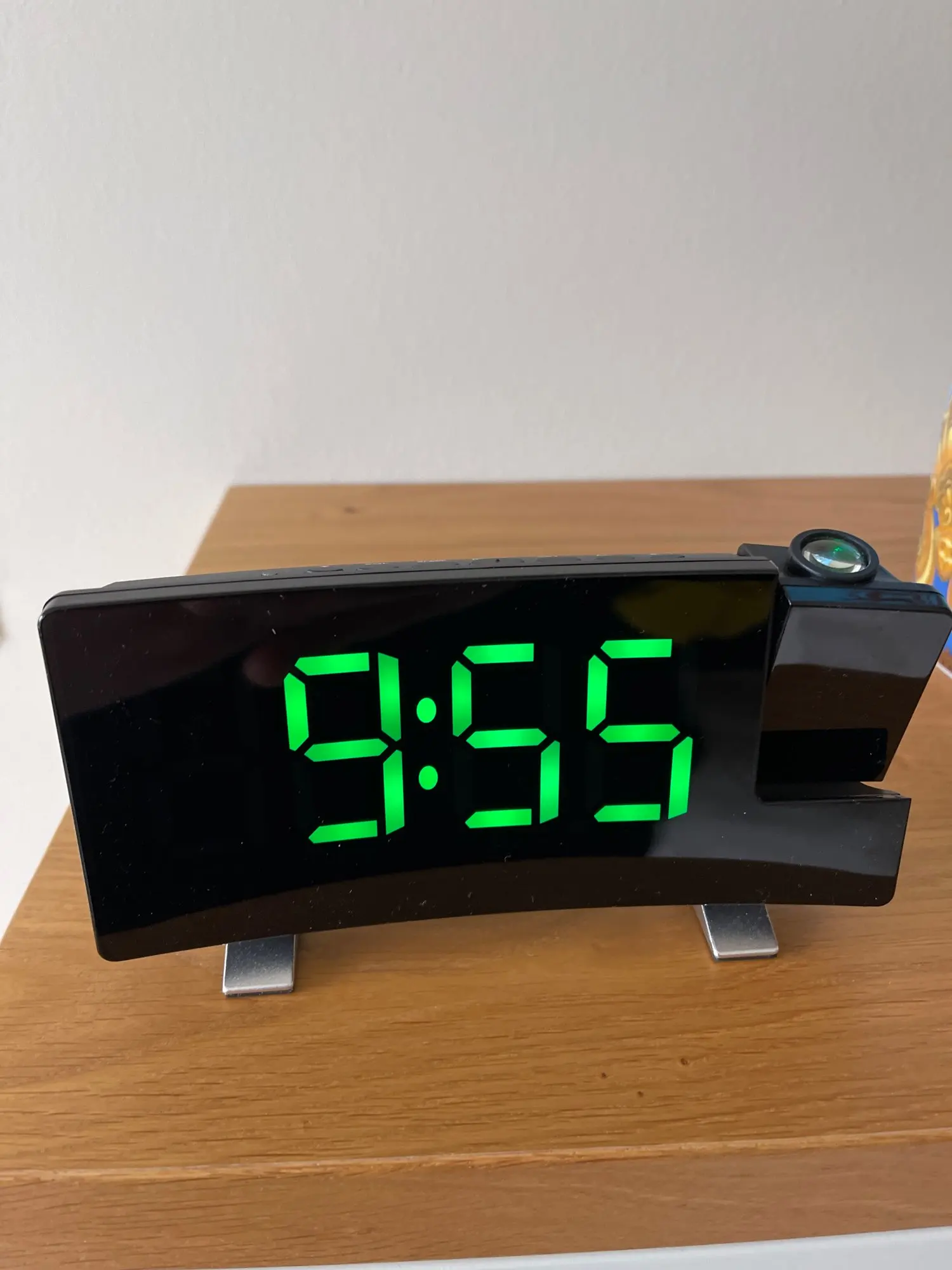 Коробка хоть и помята, но все цело и работает. 1. Проекция слабенькая, причем с приличной засветкой. Фокус не регулируется, изображение расплывчатое. Два уровня яркости + переворот на 180гр. Собственно ради зеленой проекции и брал... 2. Цифры на часах яркие, крупные. Отлично работает автоматическая регулировка яркости. 3. Будильники и радио не проверял, не пользуюсь.