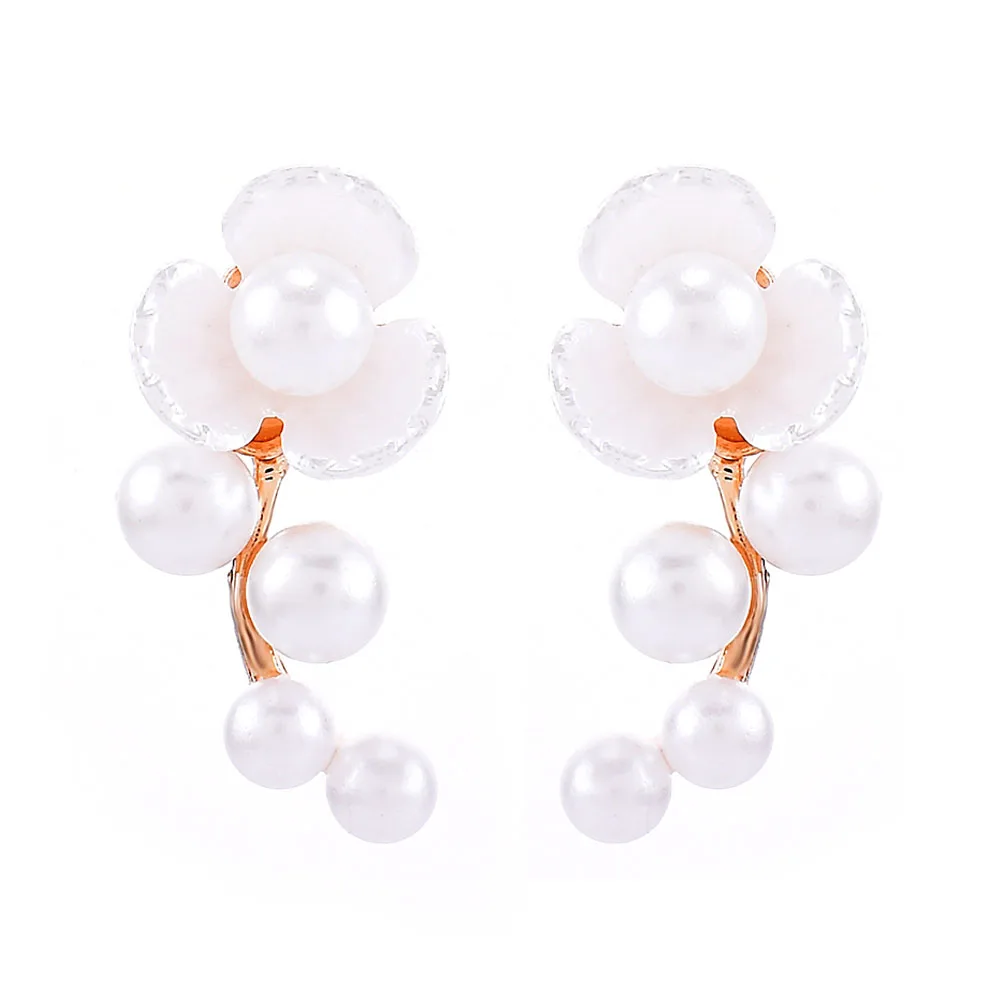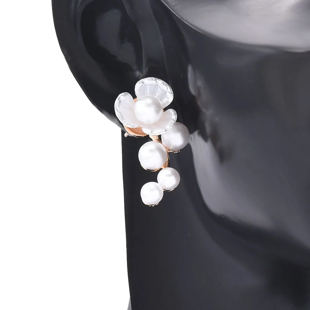 Серьги-гвоздики женские, с жемчугом и цветами