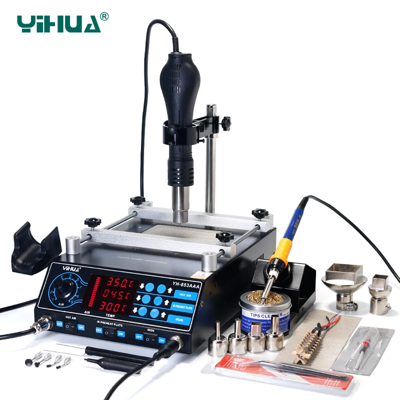 Паяльная станция YIHUA 853AAA, установка прогрева 1200 Вт для ПП, переналадочная станция BGA, паяльник, станция для Сварка тепловой пушкой