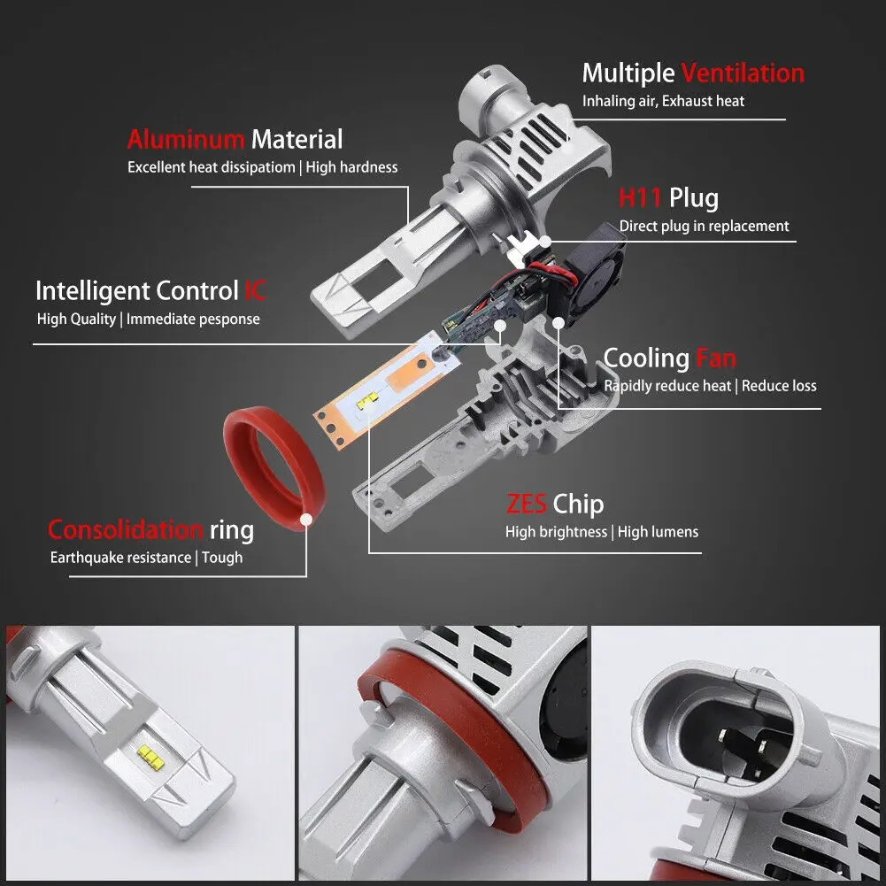 Высокая Скорость Вентилятор охлаждения гарантирует, что ваш светодиодный головной светильник лампы более 50000 часов яркого непрерывного светильник.