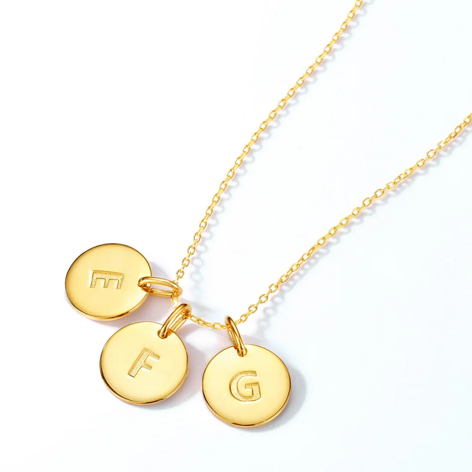 Женское Ожерелье с надписью ALLNOEL, однотонное ожерелье из стерлингового серебра 26 алфавитов, Настоящее золото, Круглый Круг, круглый диск, подарок
