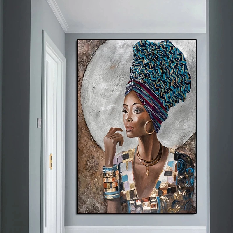 Африканская черная Женская картина маслом на холсте плакаты и принт...