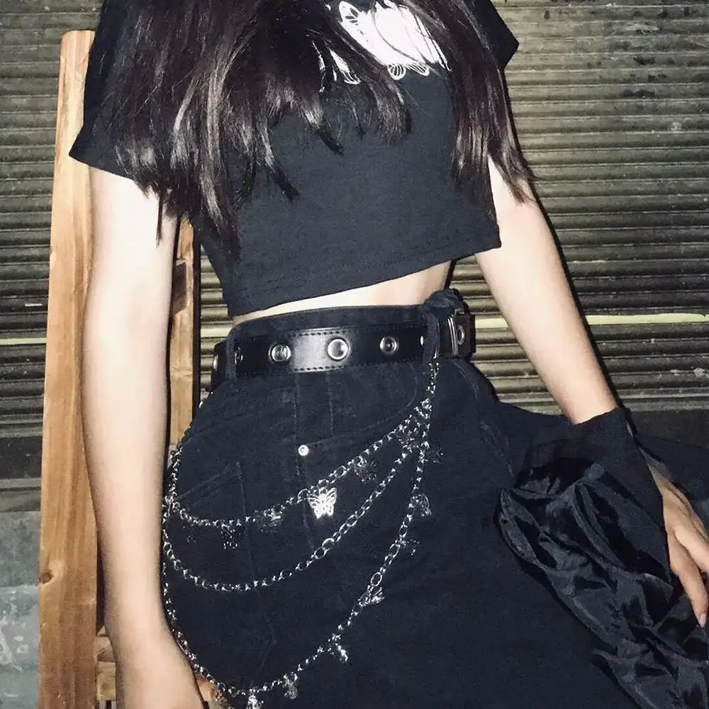 Цепочка для брюк, для женщин и мужчин, многослойная цепочка на талию в стиле панк-стрит, пояс с бабочками, брелоки на джинсы, украшение для брюк, 1 шт.