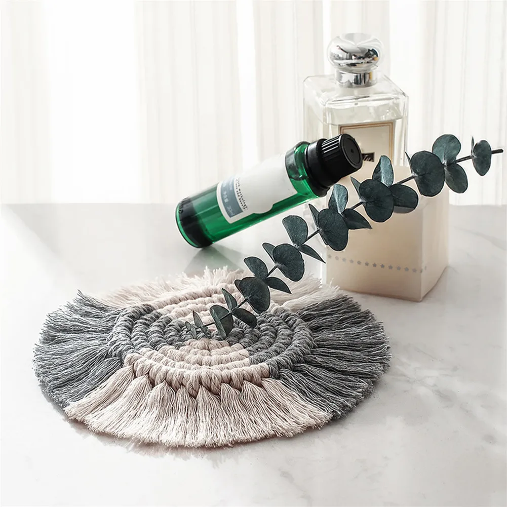 Подставка с кисточками, нескользящий хлопковый тканый Термоизолированный коврик для чашек, коврик для кофе для кемпинга, кухни, столовой, домашнего декора