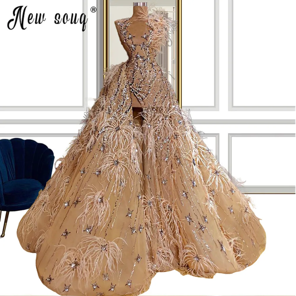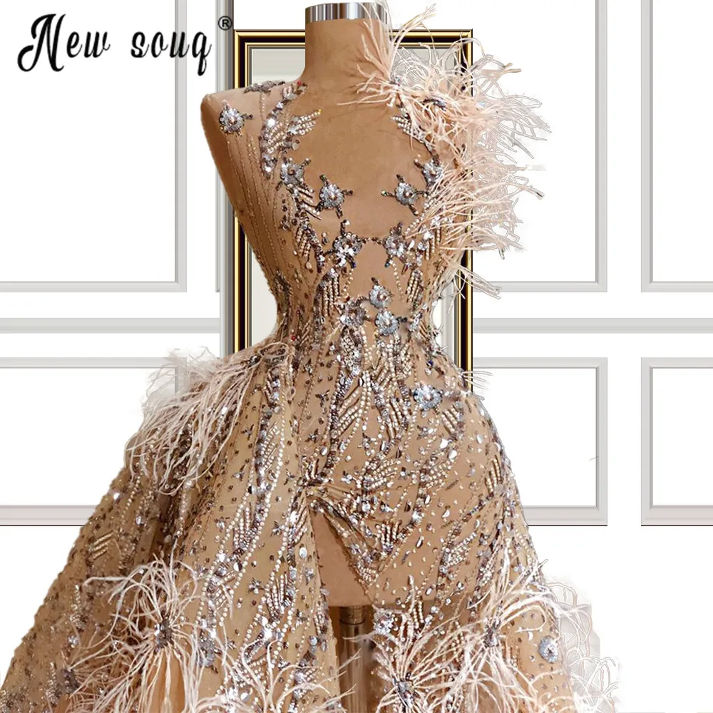 Кутюр Иллюзия вечерние платья тяжелый жемчуг кристалл Дубай Сплит Сторона перо платья знаменитостей свадебное платье для вечеринки Платье De Soiree
