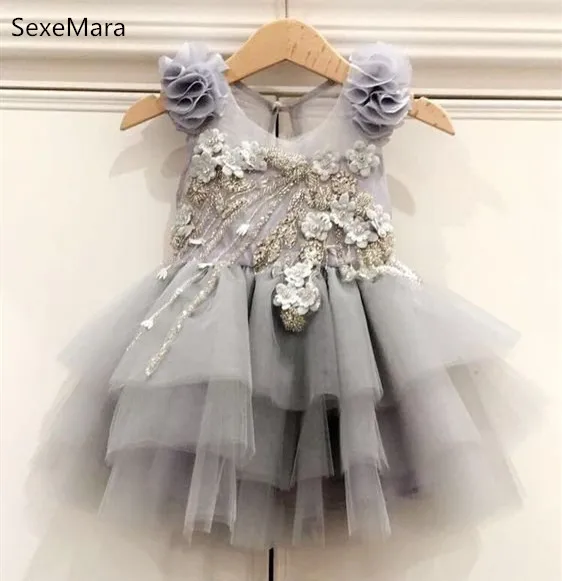 Новинка, серые платья для маленьких девочек, Тюлевое Платье До Коле...