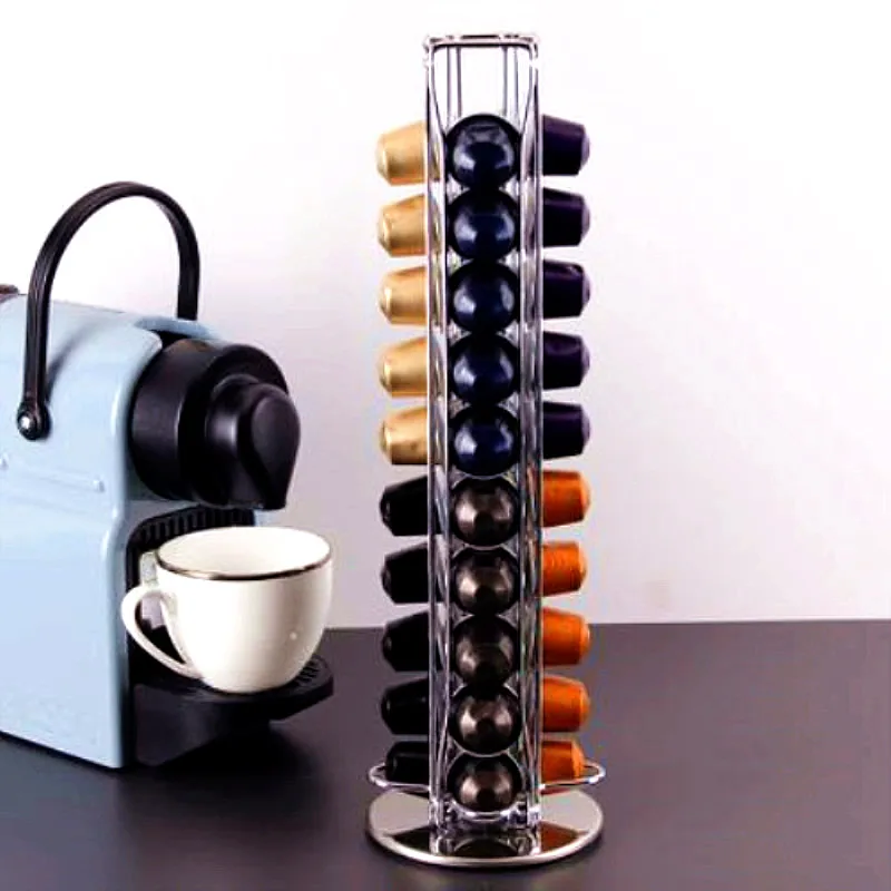 Башенная подставка для раздачи капсул кофе черногосеребристого цвета, подходит для 40 капсул Nespresso капсулы для хранения, кухонные полки опционально переводятся