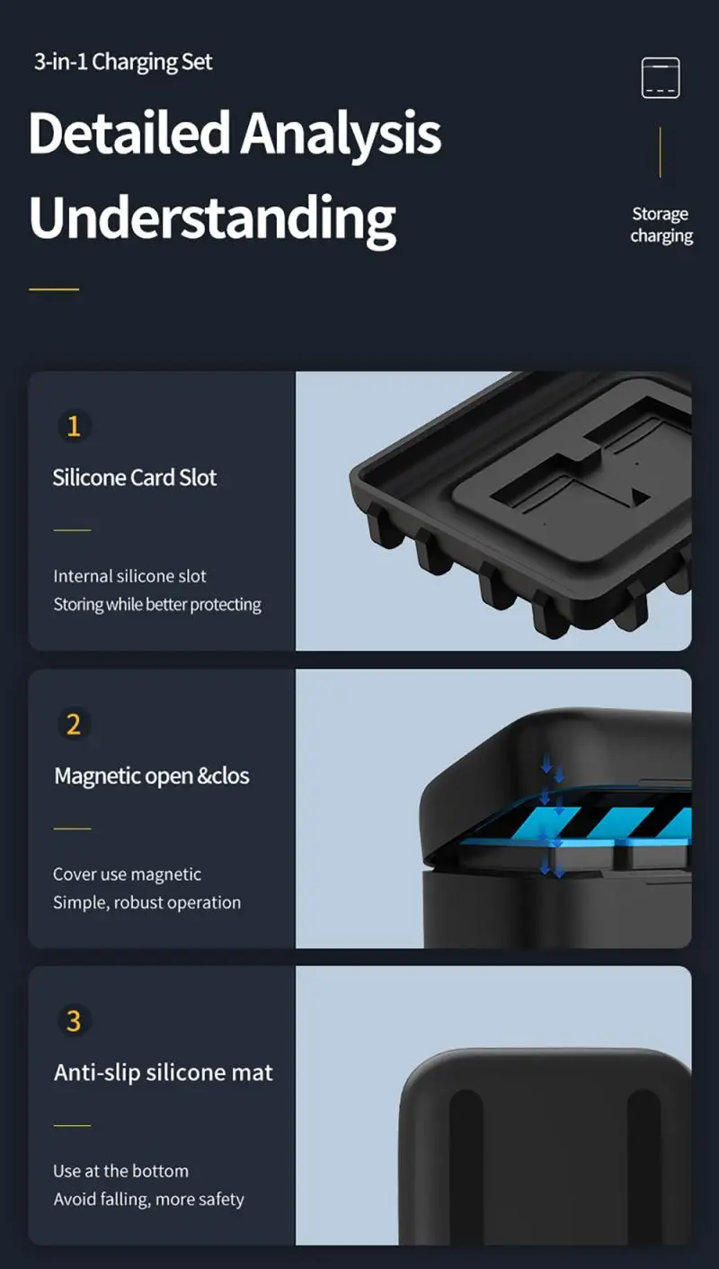 Это зарядное устройство предназначено как ящик для хранения и переноски 3 батарей.