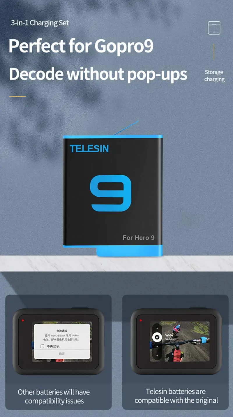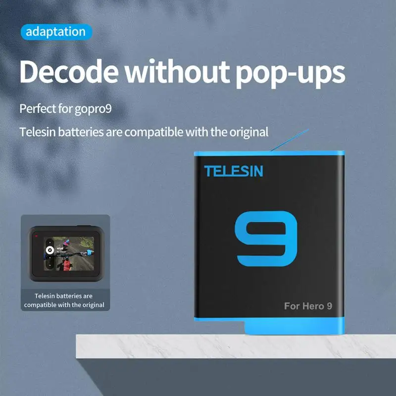 4. Сильная Совместимость: работает с аккумулятором TELESIN и оригинальным аккумулятором Hero 9.