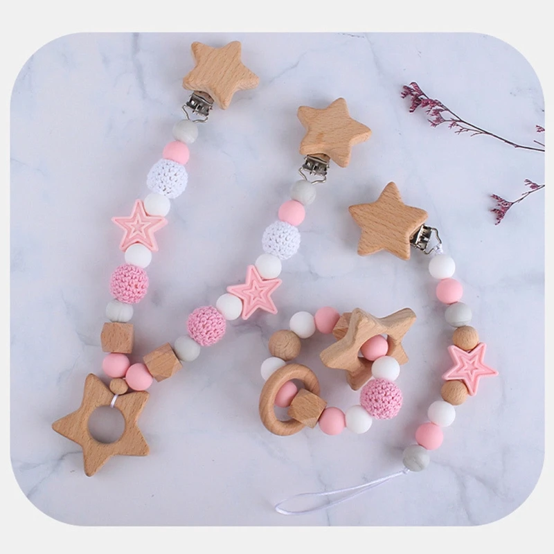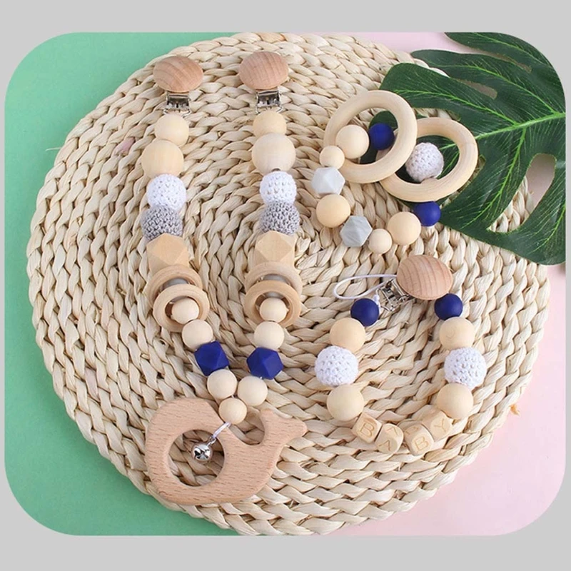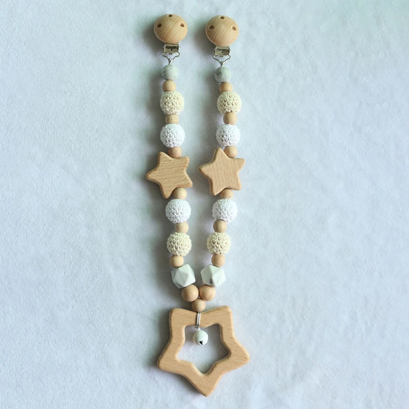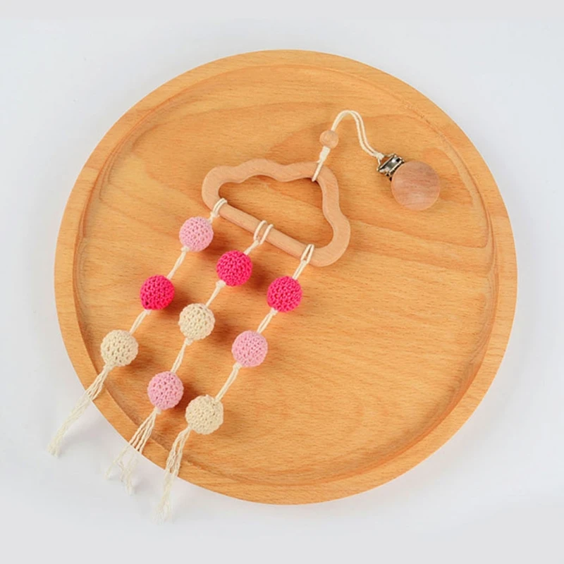 Материал: бук + силикон + Вязаная Шерсть (деревянные бусины: окрашенные)