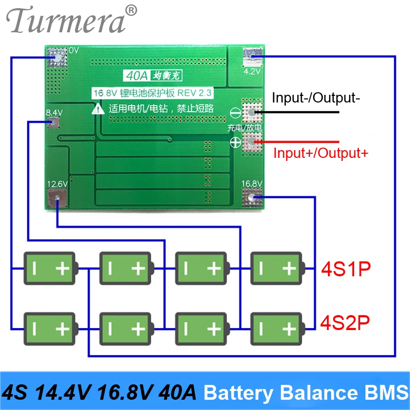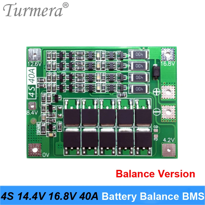 Сбалансированная Защитная литиевая батарея Turmera BMS 4S 40A 14,4 В 16,8 в 18650 21700 26650 для шуруповерта и использования фар