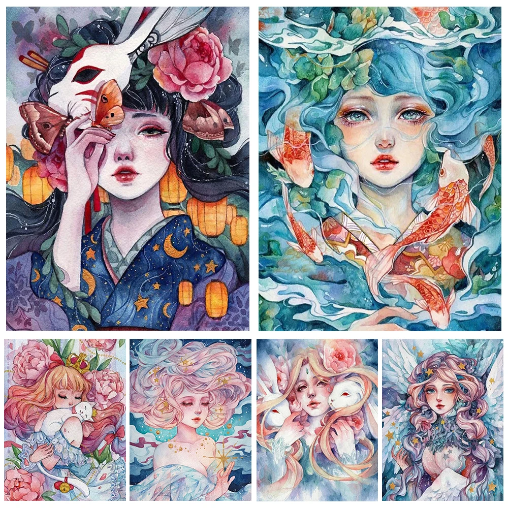 5D алмазная живопись сделай сам, портрет мультяшной девушки, полноразмернаякруглая Алмазная вышивка, набор мозаики, высококачественные товары ручной работы, искусство