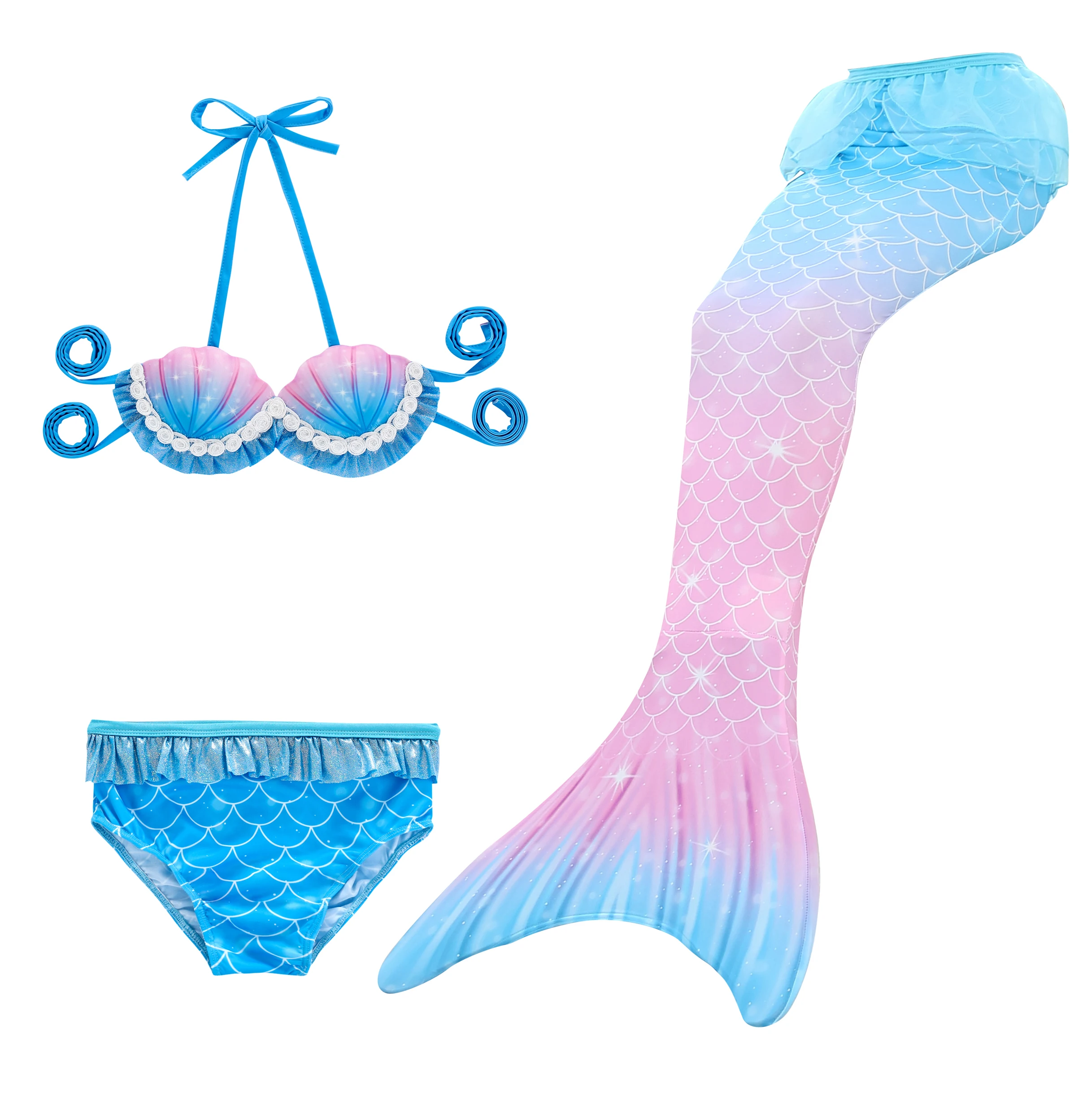 3 шт./компл., платье принцессы с хвостом русалки для девочек, детский праздничный костюм русалки, костюм для косплея, купальник без флиппера, костюм на Хэллоуин