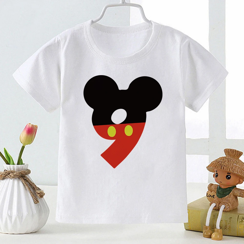 Новинка, детские футболки на день рождения для мальчиков и девочек с рисунком мыши, футболка с коротким рукавом, размеры, детская одежда для вечерние, футболка