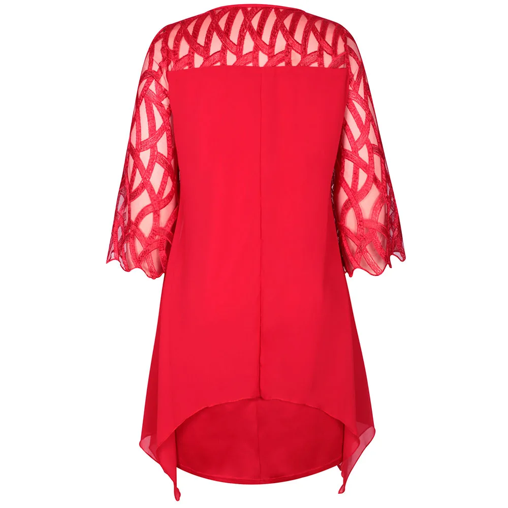 Женское платье с кружевным рукавом, элегантное Сетчатое лоскутное Повседневное платье средней длины, весеннее белое праздвечерние чное платье с круглым вырезом, 5XL, 6XL, 2022