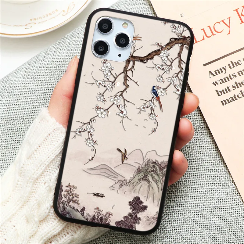 Мягкий чехол для телефона с 3D тиснением гор и деревом для iPhone 1...
