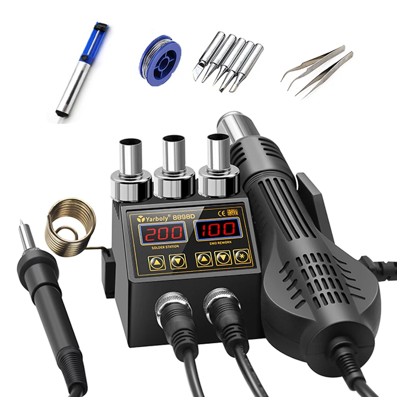 Паяльная станция 2 в 1 с ЖК-цифровым дисплеем, паяльная станция с горячим воздухом, Электрический паяльник для телефона, печатной платы SMD BGA, сварка