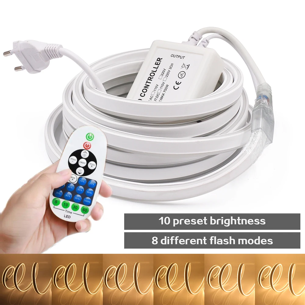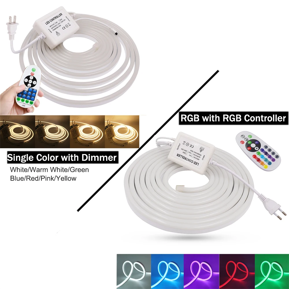 RGB неосветильник гибкая светодиодная лента + диммер Управление неоновая вывеска веревка 5050 2835 водонепроницаемая лента неоновая трубка 220 В ЕС 110 в США белый теплый белый