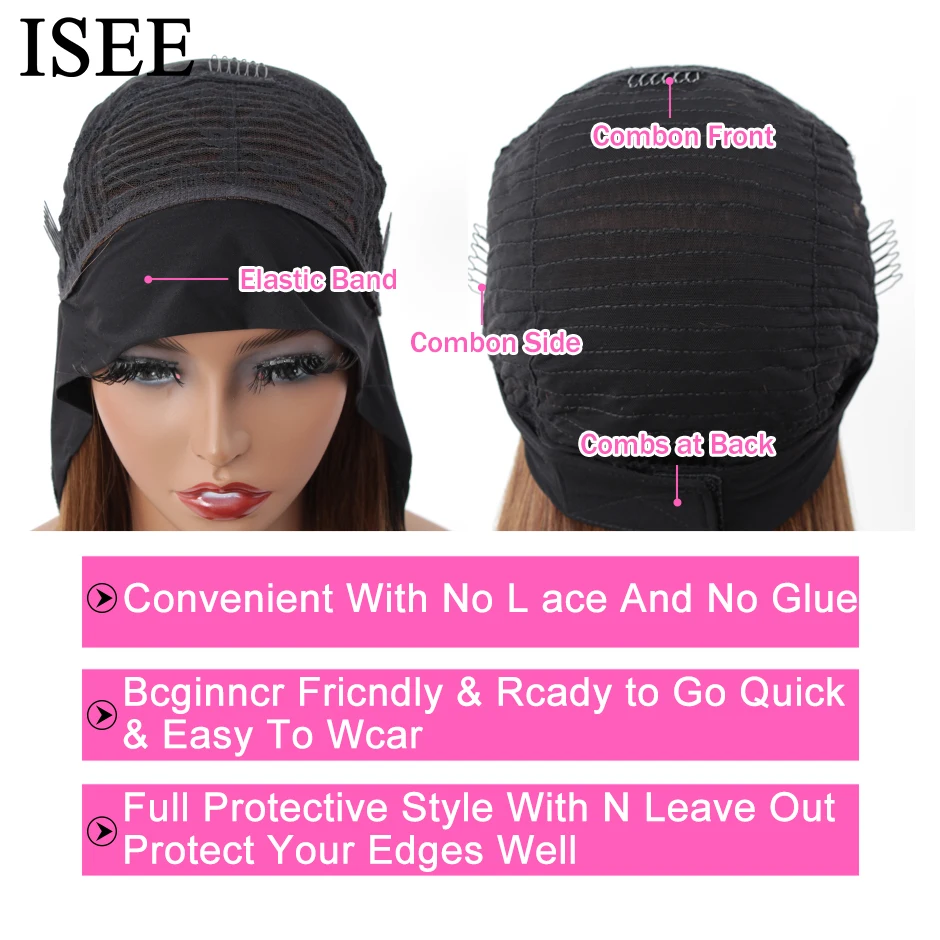 Прямые парики из парик с головной повязкой натуральных волос, плотность 180%, бразильские прямые волосы с эффектом омбре, волосы ISEEHAIR, парик блонд медового цвета для чернокожих женщин