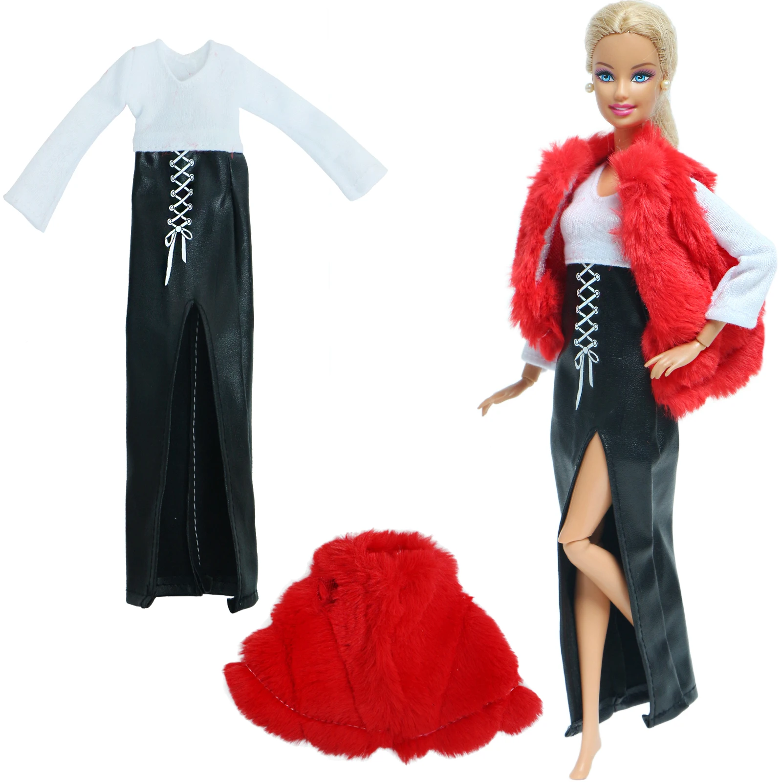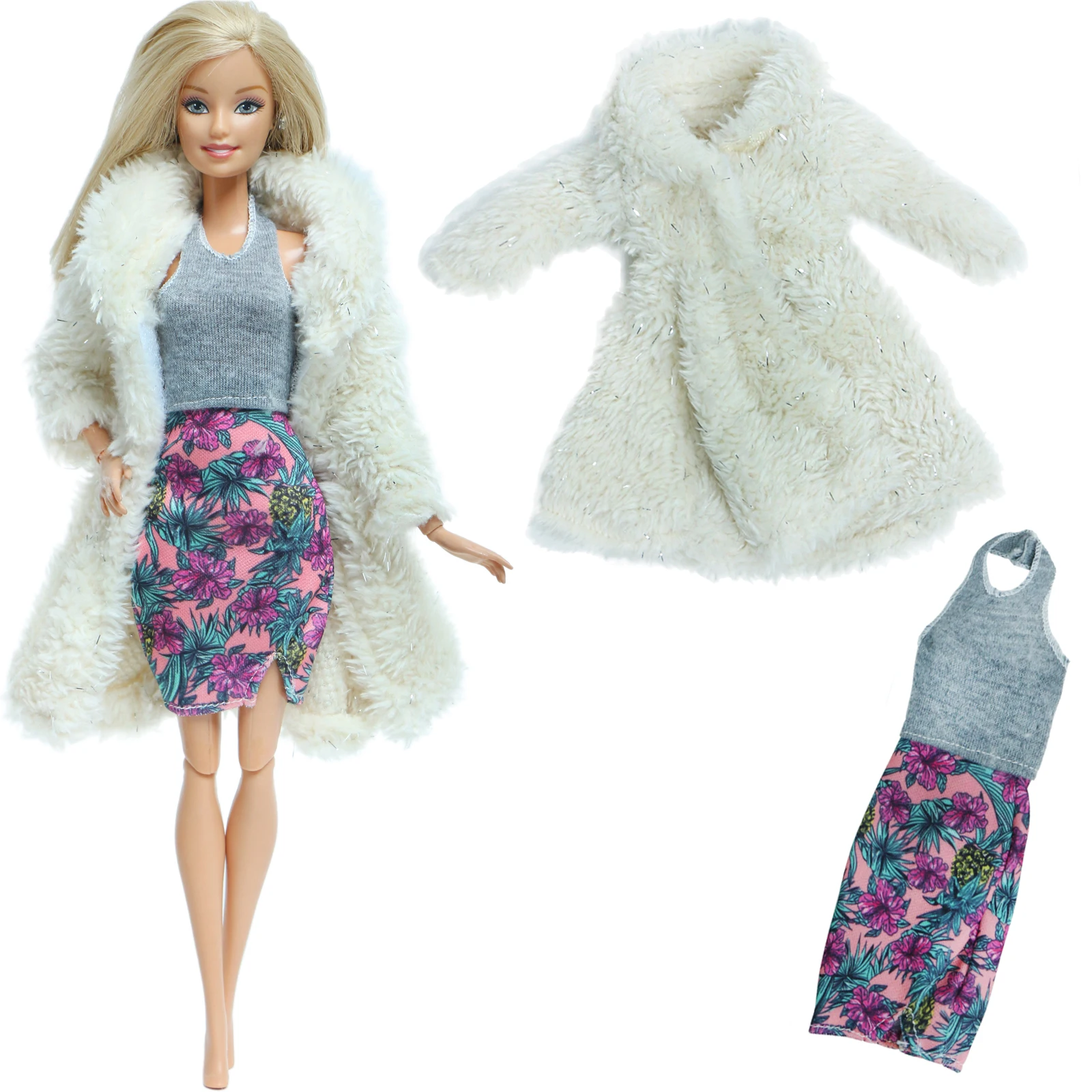 Стильный наряд для куклы, модная зимняя шуба, платье, топ, жилет, юбка, Повседневная Одежда для куклы Барби, аксессуары, игрушки