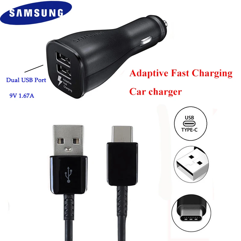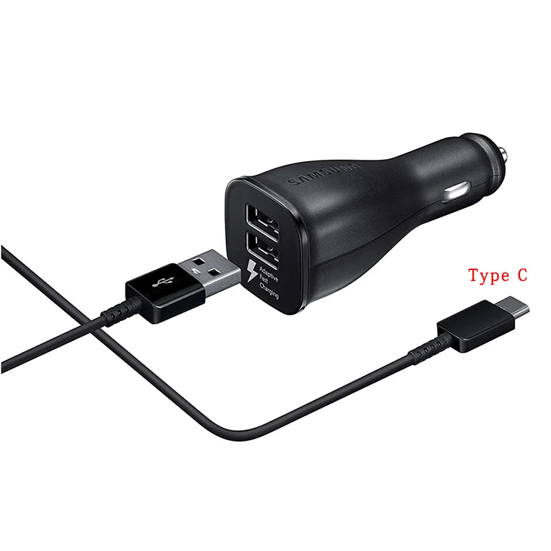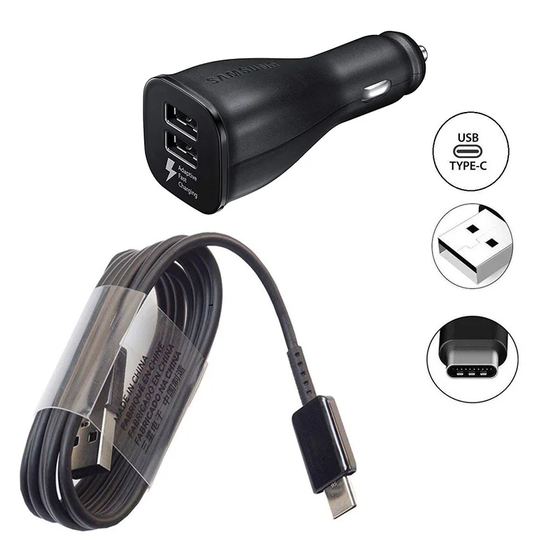 Особенности: -SAMSUNG Dual USB адаптивный Быстрый автомобильный адаптер зарядного устройства -Цвет: черный/белый -Выход: 5 В/2 а 9 В/1,67 А (оба порта USB поддерживают порт быстрой зарядки) -- 120 см/150 см TYPE-C кабель