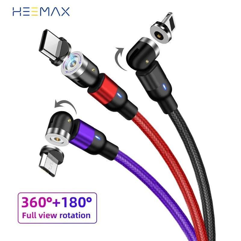 Магнитный кабель HEEMAX Micro USBType-C, 1 м, 2 м, для Xiaomi, Samsung, Iphone мобильный телефон, со светодиодной подсветкой
