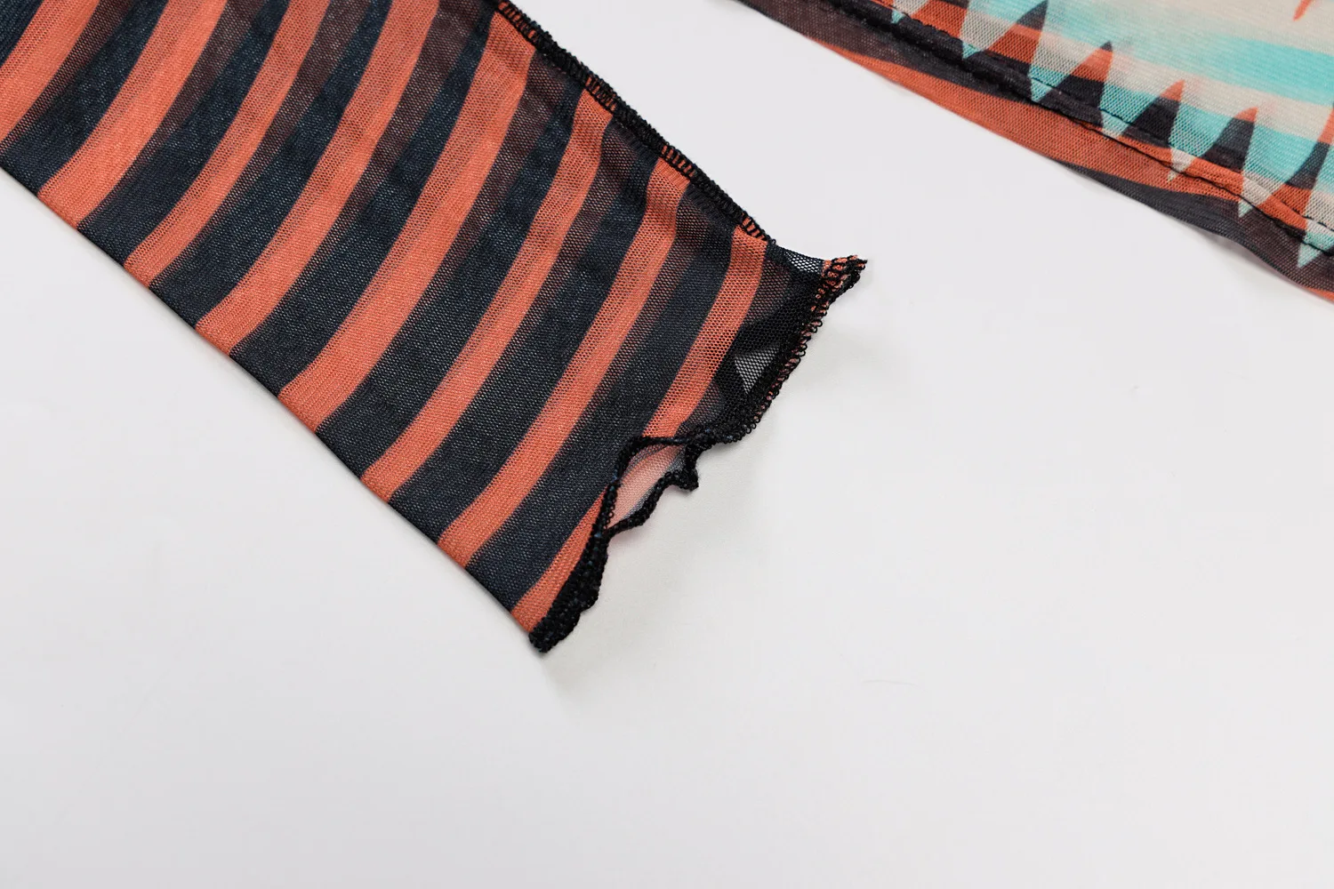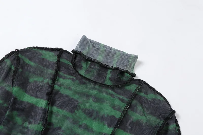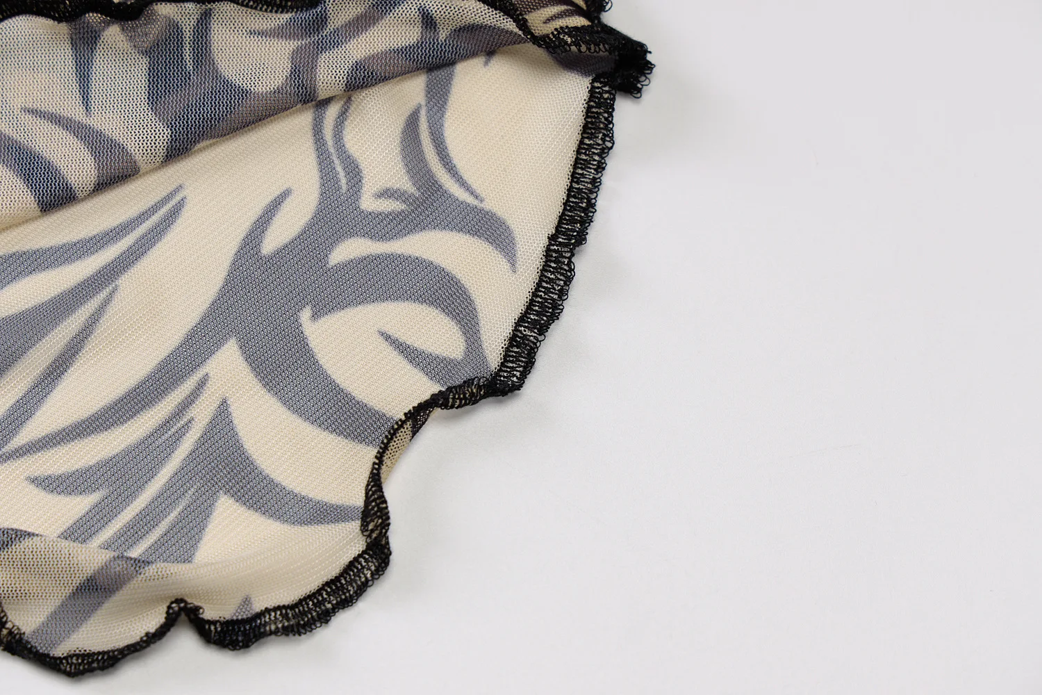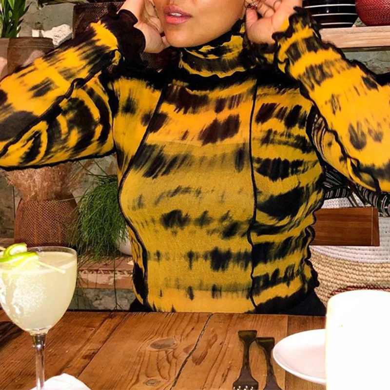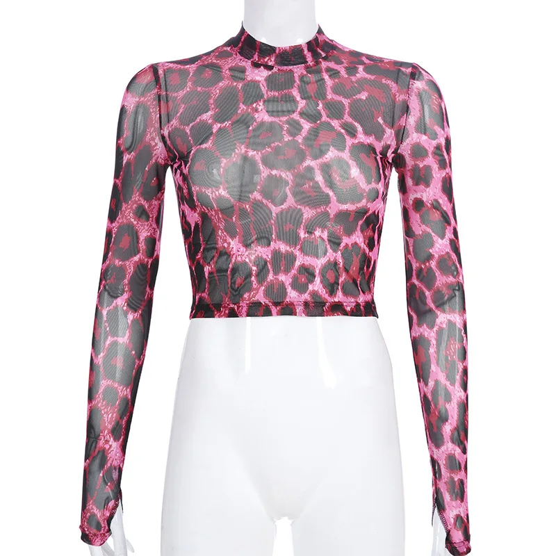 Сетчатый топ Y2K, укороченный Топ с длинным рукавом, водолазка, футболка с вышивкой, сексуальная Просвечивающая аниме футболка, Клубные топы с принтом, одежда Феи гранж
