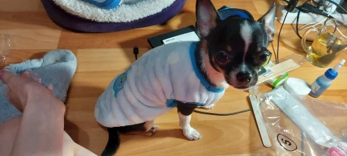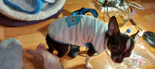 это уже 4я наша жилеточка, очень комфортная, что можно и дома носить, и под одежду поддевать, жилетку данного продавца мы не сфоткали, но в галерее есть фотки предыдущих, у каждого продавца они практически идентичны, поэтому смысл брать "подороже" не вижу, единственное где подороже быстрее была доставка. размеры совпадают с таблицей, наши параметры чихуахуа 1 год 2.5 кг, шея 21 см, под лапками 33 см, 26 см от холки. в днепр посылка пришла за 3 недели