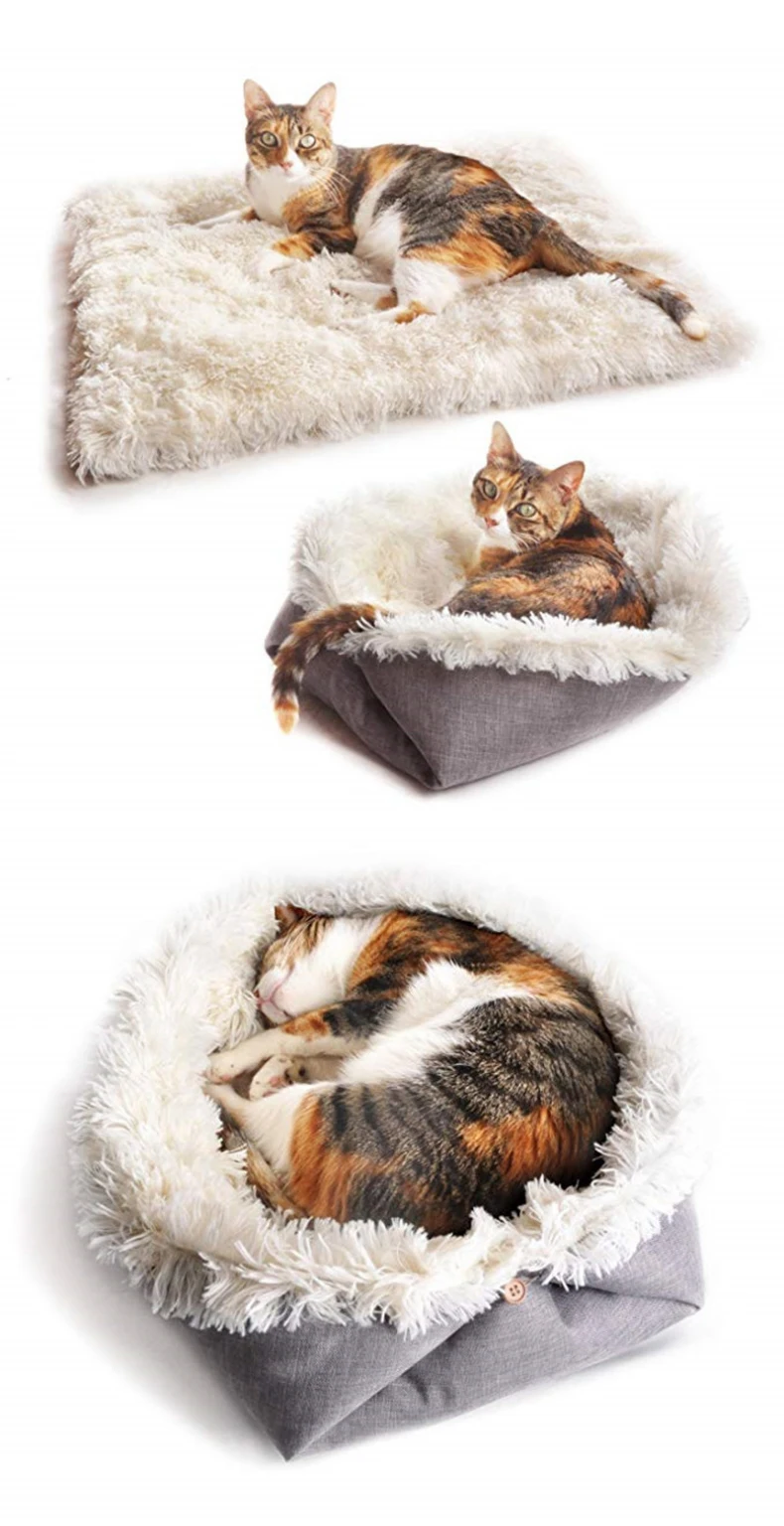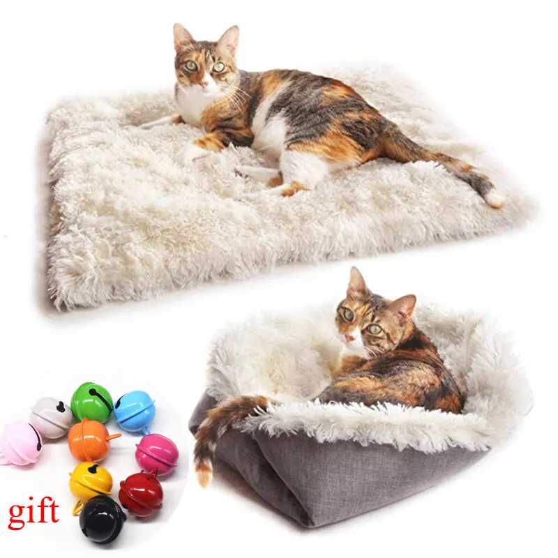 Кошачий домик, искусственная плюшевая складная кровать, Аксессуары для кошек, зимняя теплая кровать для маленьких собак, ковер, домашняя Подушка, товары для домашних животных