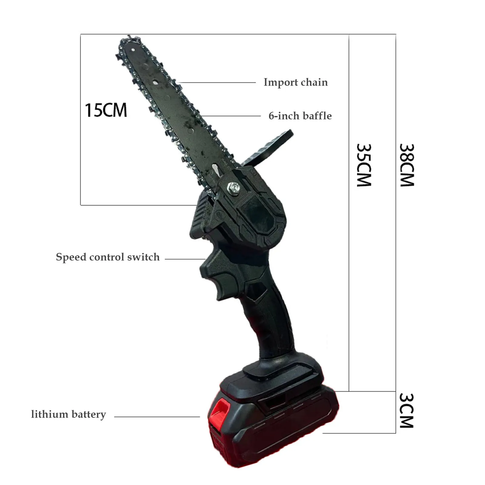 Точки пули:1. Использование одной рукой: весит всего около 1400 г, корпус бензопилы составляет около 700 г, Общая длина составляет около 38 см. Можно управлять и использовать d одной рукой. Женщины также могут легко контролировать и использовать его, не уставать после долгих часов работы.2. Эффективная резка: электрическая пила использует двигатель из чистой меди, который является мощным, быстро режет древесину и имеет длительный срок службы. Он автоматически отключает питание во время высокой температуры и безопасен.3. Электрическая Беспроводная резка: Этот нужно только заряжать и вырезать вручную, что решает проблемы запутанных проводов и без электричества, особенно при использовании на открытом воздухе, может легко отрезать.4. Ручная дефлектор: ручная дефлектор дизайн, размещение опилок брызг, имеет лучший эффект брызг.5. Широкое применение: для резки деревянного блока диаметром 15 см требуется около 10 секунд (это зависит от фактического размера и твердости древесины). Очень подходит для резки дерева, обрезки деревьев и садоводства. Но не подходит для сухой древесины.Особенности:С Защита рук, 6 дюймов ободок.Спецификация:Название: 6 дюймов (с помощью одной руки электрическая пилаСкорость цепи: 5 м/сМощность аккумулятора: 550 (Вт)Емкость аккумулятора: 2000 мА перезаряжаемая литиевая батареяНапряжение продукта: 21 вЦепь: быстрая регулировкаМаксимальная толщина резки: около 80 мм/3,15 дюймаПривод двигателя: мощный магнитный двигательПрименение: Обрезка и лесозаготовка фруктового дереваУпаковочный лист:1 * ручная бензопила1 * Аккумулятор1 * зарядное устройство1 * отвертка1 * гаечный ключ1 * ИнструкцияПримечание:При установке цепи, пожалуйста, обратите внимание, что 3 зубца должны быть снаружи, цепь не может быть отрегулирована до самых плотных, в противном случае цепь сломается.