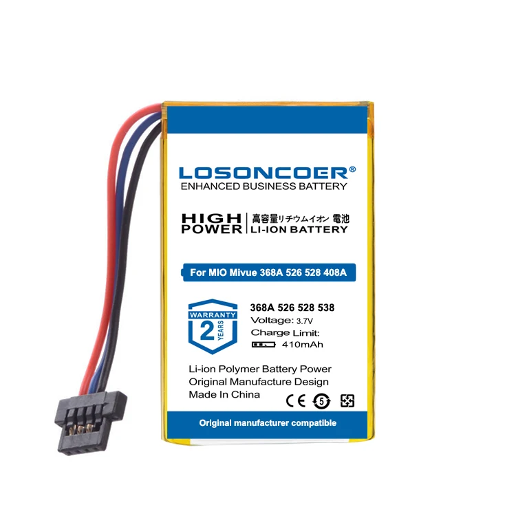 LOSONCOER 410 мАч литий-полимерный аккумулятор для DVR MIO Mivue 368A 526 528 536 568 408A 518 538 658 668 680 688 618 Mio Mivue 698 772