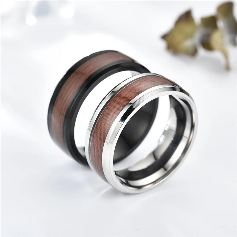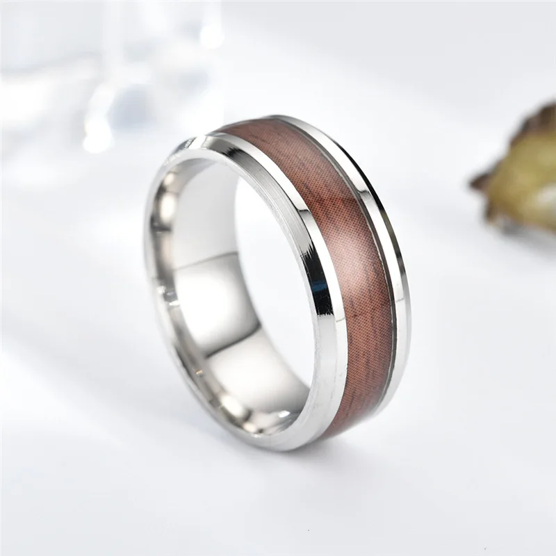 Мужское кольцо из нержавеющей стали с имитацией под дерево