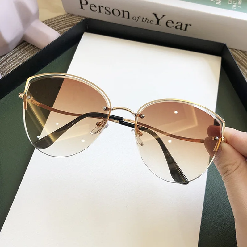 Солнцезащитные очки женские кошачий глаз без оправы градиентный солнцезащитные очки с прозрачными линзами цвета океана солнцезащитные очки для женщин UV400 очки для водителя