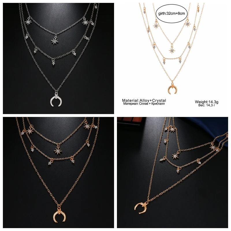 DAXI винтажное многослойное кулон, цепочка, колье для женщин, 2021 серебристого золотистого цвета Луна полумесяц из нержавеющей стали Длинное колье-чокер C
