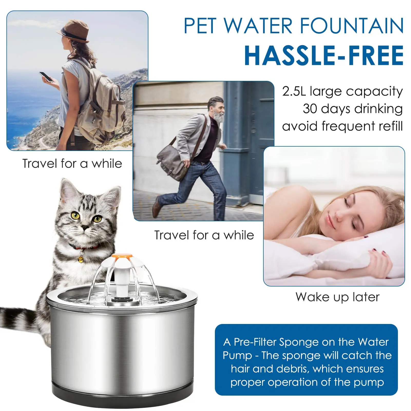 Автоматический питьевой фонтанчик для кошек, 2500 мл, из нержавеющей стали