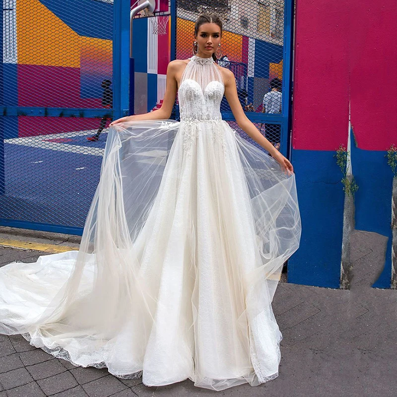 Женское свадебное платье со шлейфом MYYBLE, кружевное платье невест...