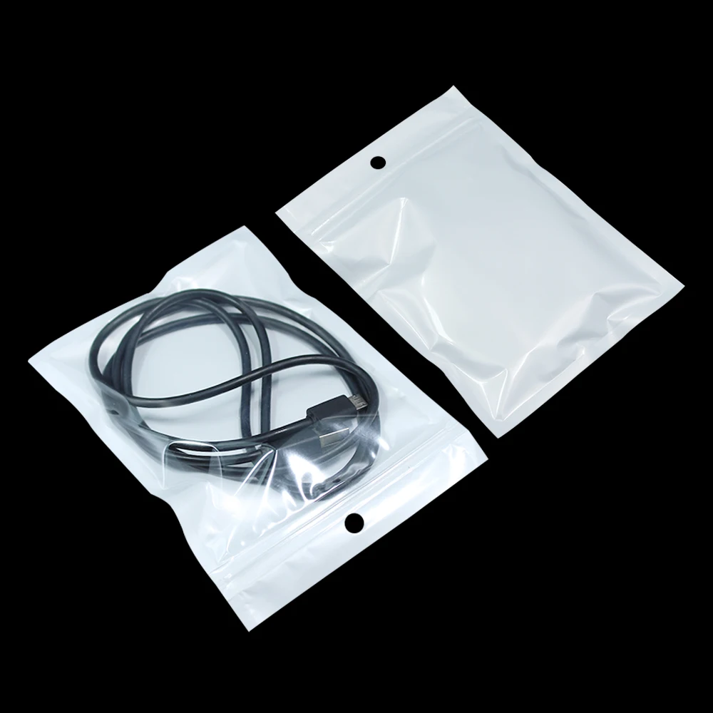 Белые прозрачные пластиковые пакеты с застежкой-молнией 100 шт.лот, пакеты с отверстием для подвешивания, самозакрывающийся пакет для хранения, пакет для упаковки на молнии