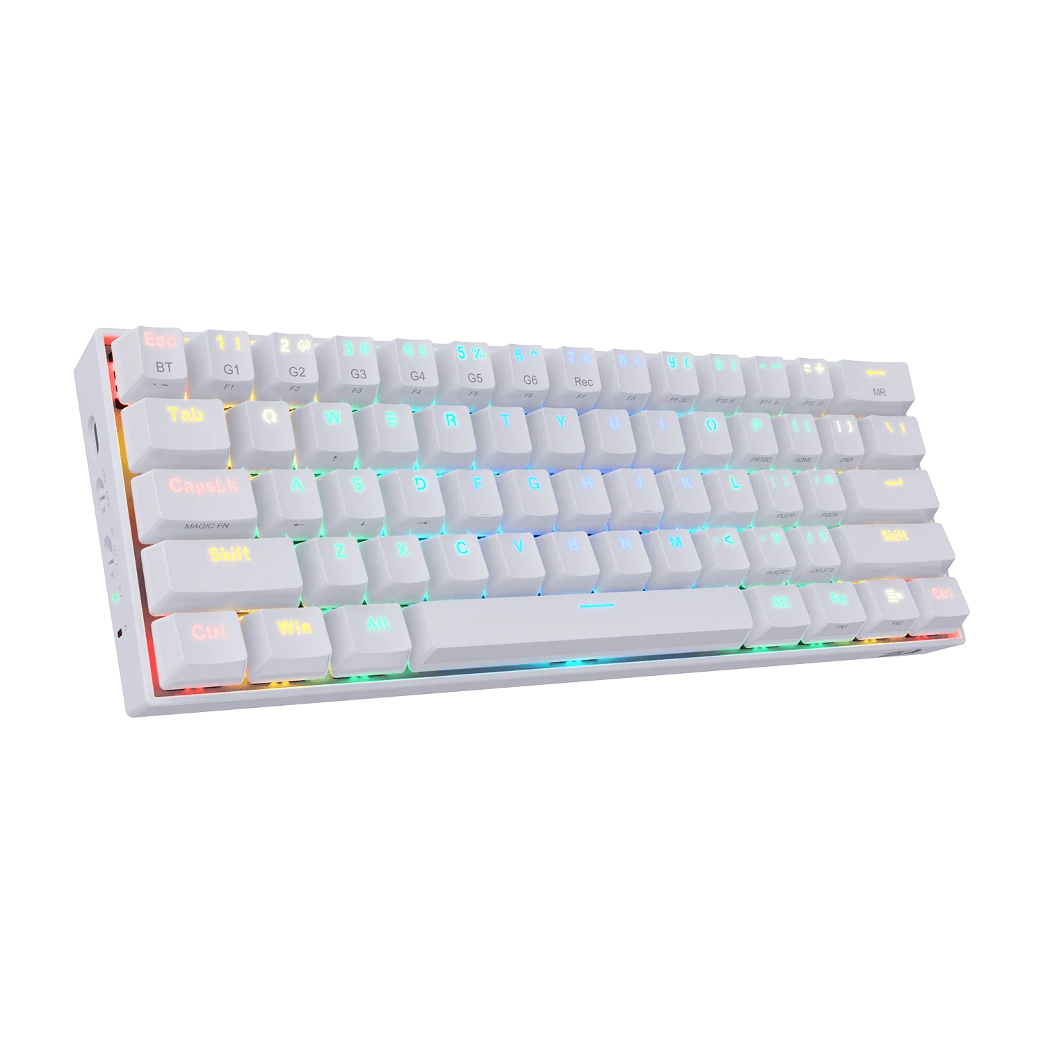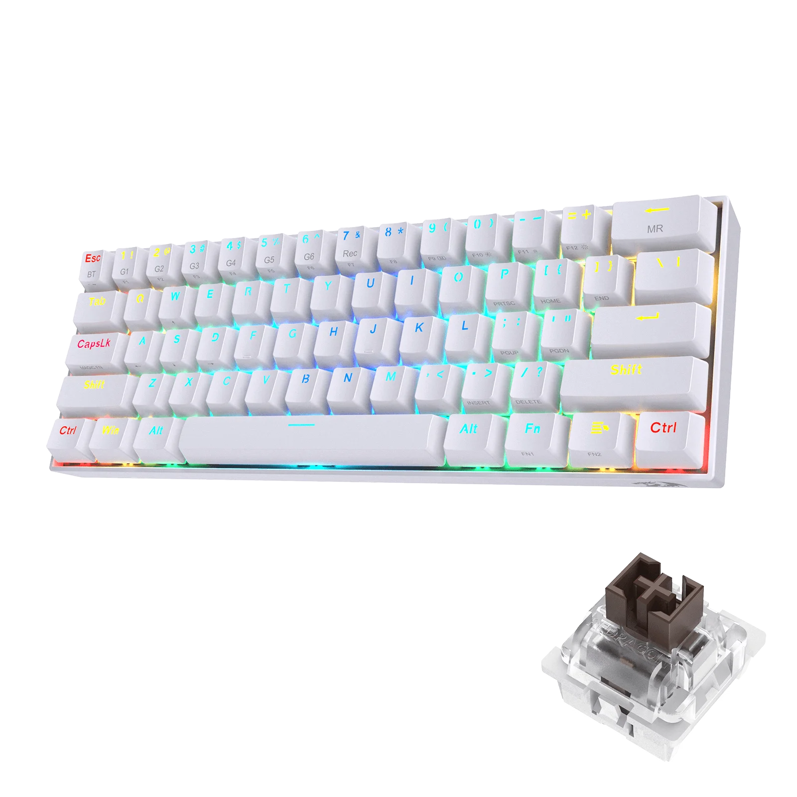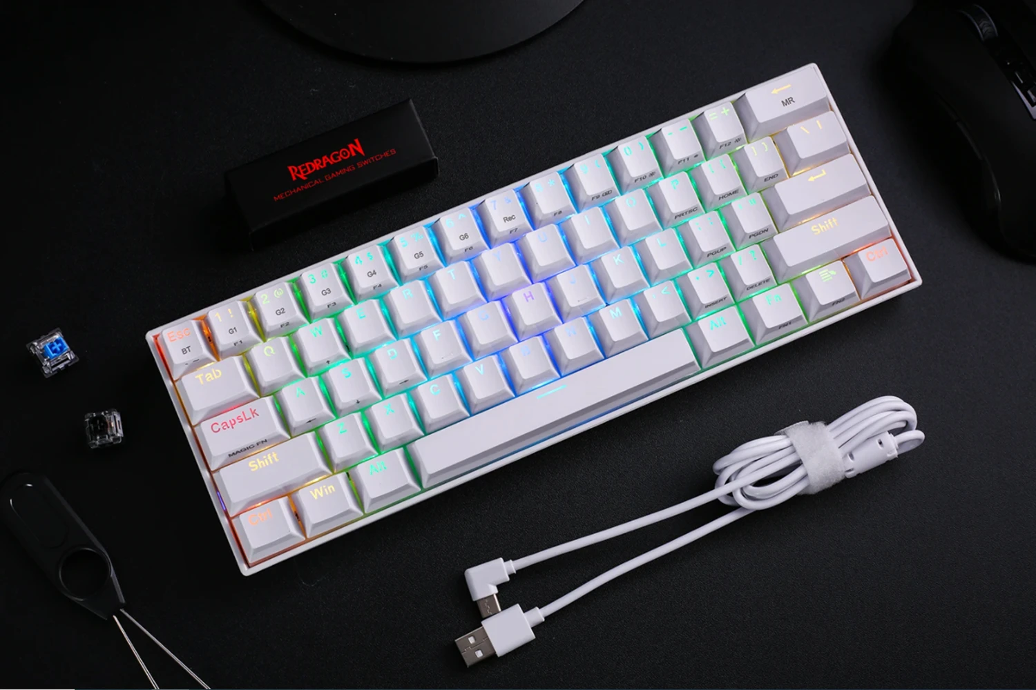 Первая клавиатура Redragon 60%-Ультра минималистичный дизайн без tenkeyless (TKL) с 61 клавишей портативная раскладка освобождает место на столе для перемещения мыши, что обеспечивает самую высокую производительность для FPS pro (11,5*3,9*1,4 дюйма).
