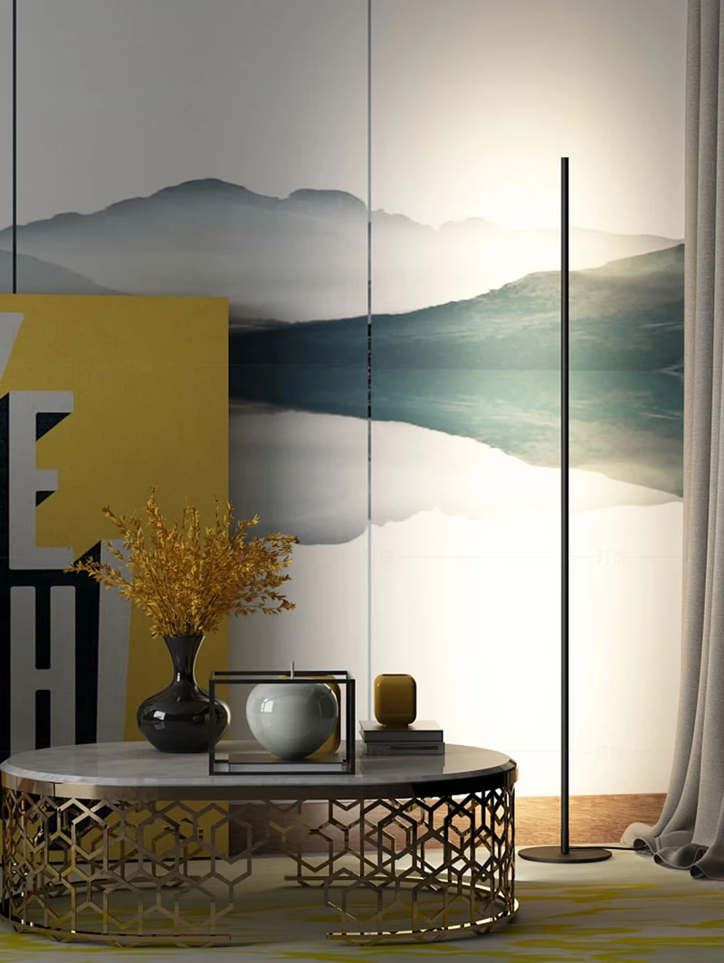 Современный минималистичный светодиодный Напольная Лампа в скандинавском стиле, стоячие лампы для гостиной, черные алюминиевые люминесцентные лампы, светильник-подставка для салона