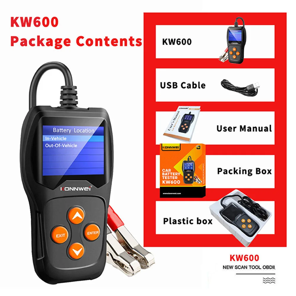 KONNWEI KW600 Тестер нагрузки на автомобильную батарею 12V 100-2000 CCA профессиональный автомобильный генератор цифровой анализатор инструмент для тестирования формы волны